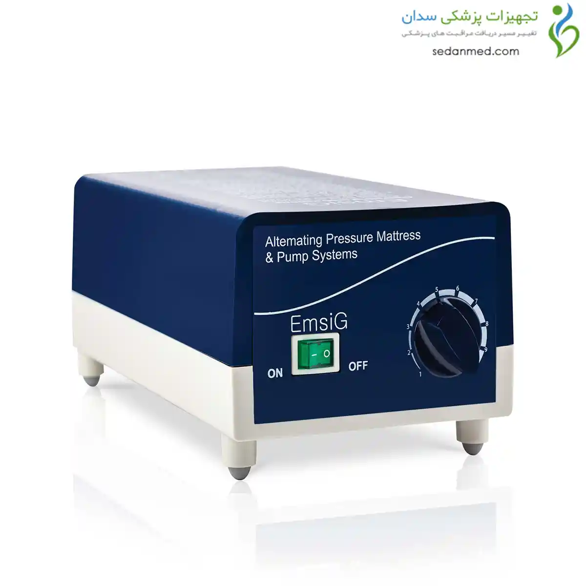 تشک مواج تخم مرغی AM28 امسیگ (EmsiG) با بهرهگیری از پمپ کمصدا و دارای فیلتر هوا، هوای داخل سلولها را با فشار قابل تنظیم به گردش درمیآورد.